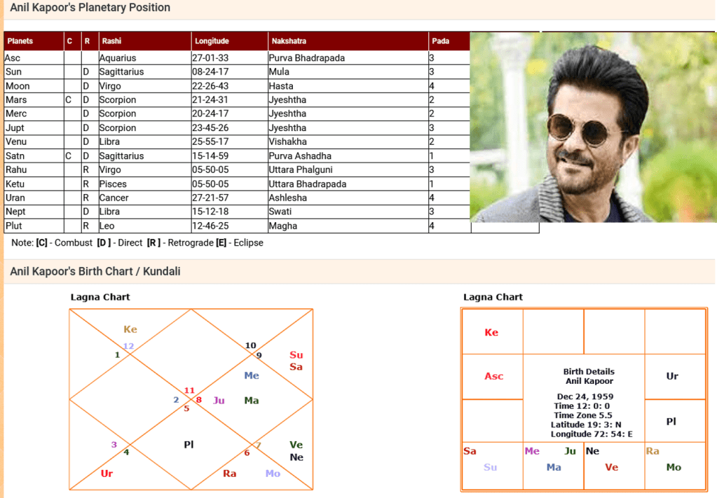 So first study what the combinations as per our books are there and then will discuss number of charts of celebrities and reasons for their success. The birth details and charts has been taken from internet and sites as astrosage.
