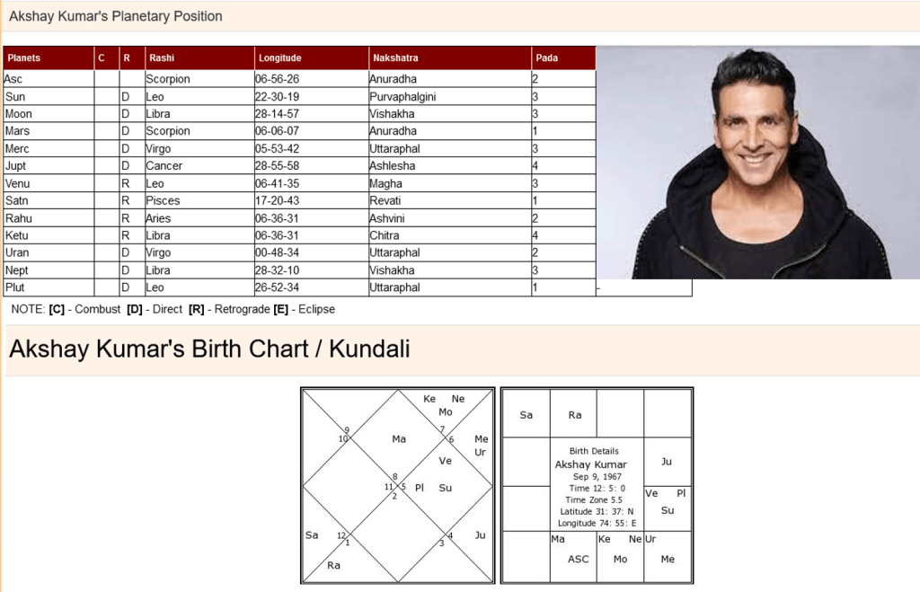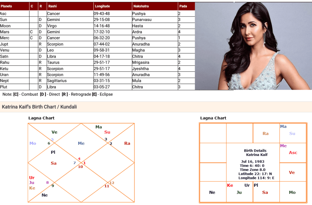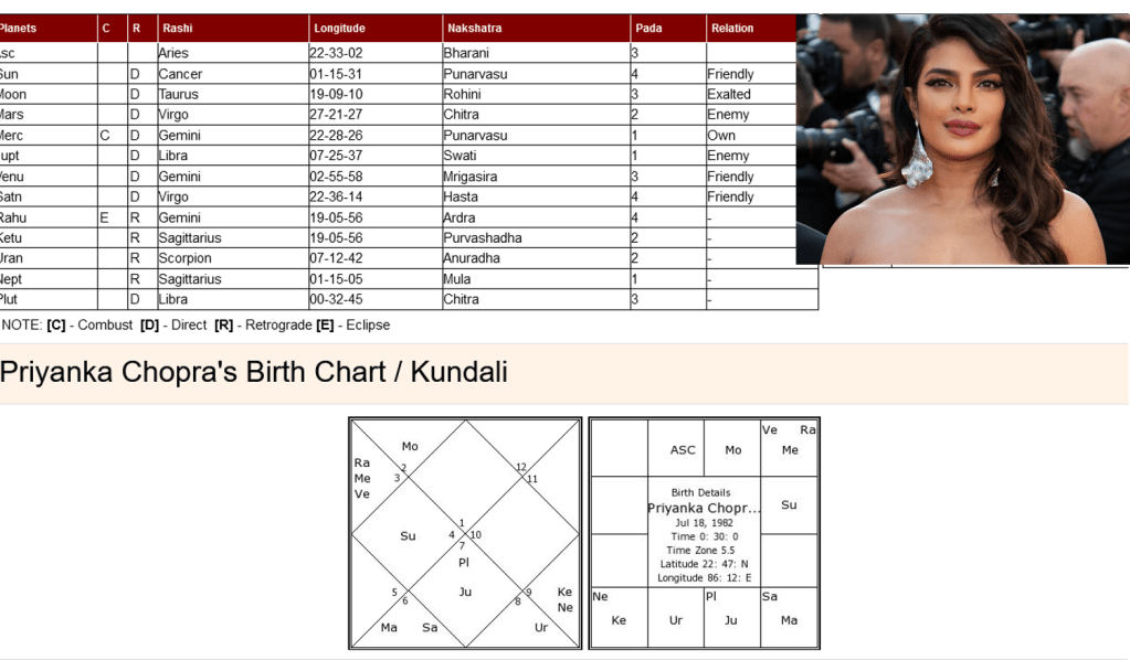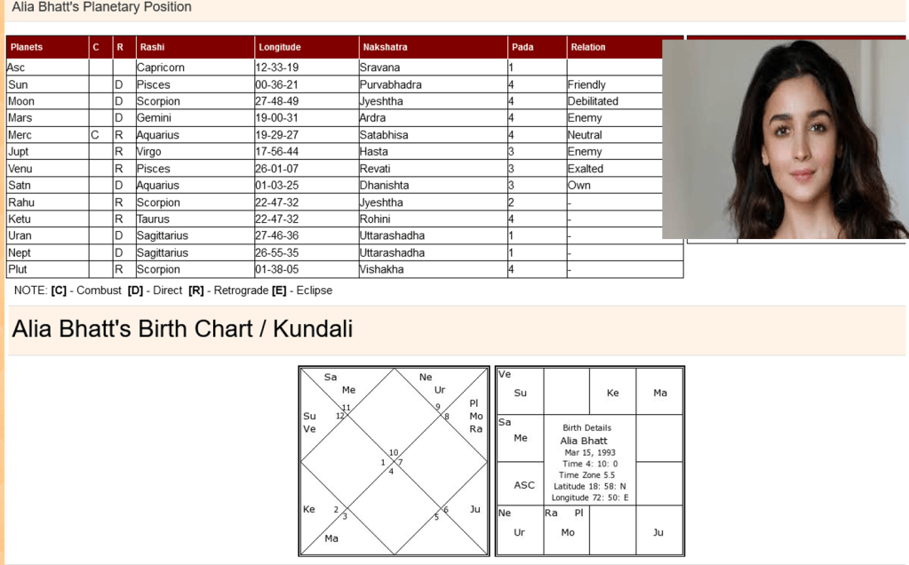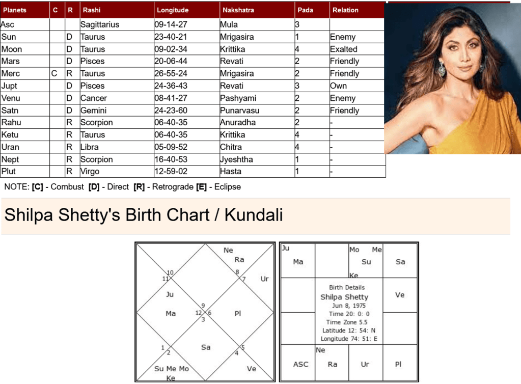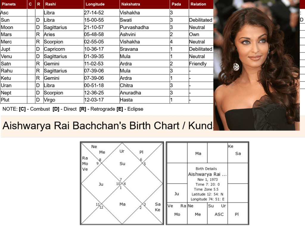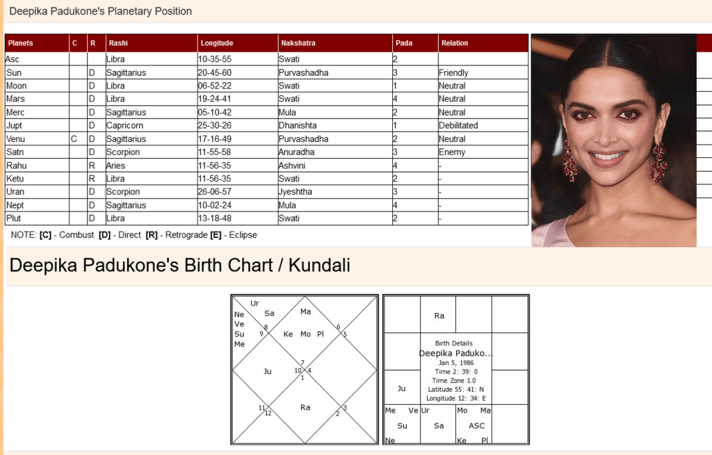 In her case, Rahu Moon and Venus were the planets responsible for her success.