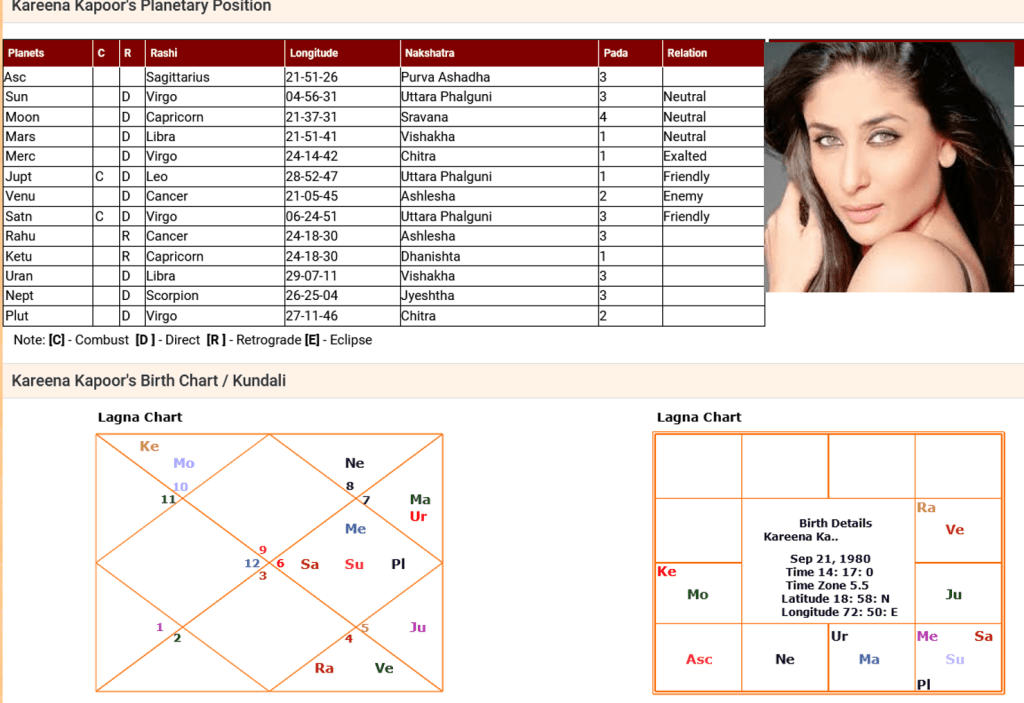 Again Reason for her success was Libra Lagna and Lagnesh Venus in 3rd house with Sun.