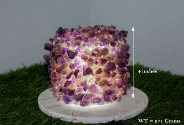 This healing chakra amethyst lamp is made from natural amethyst and wood base. Unique amethyst for reiki energy healing, meditation and yoga balance.